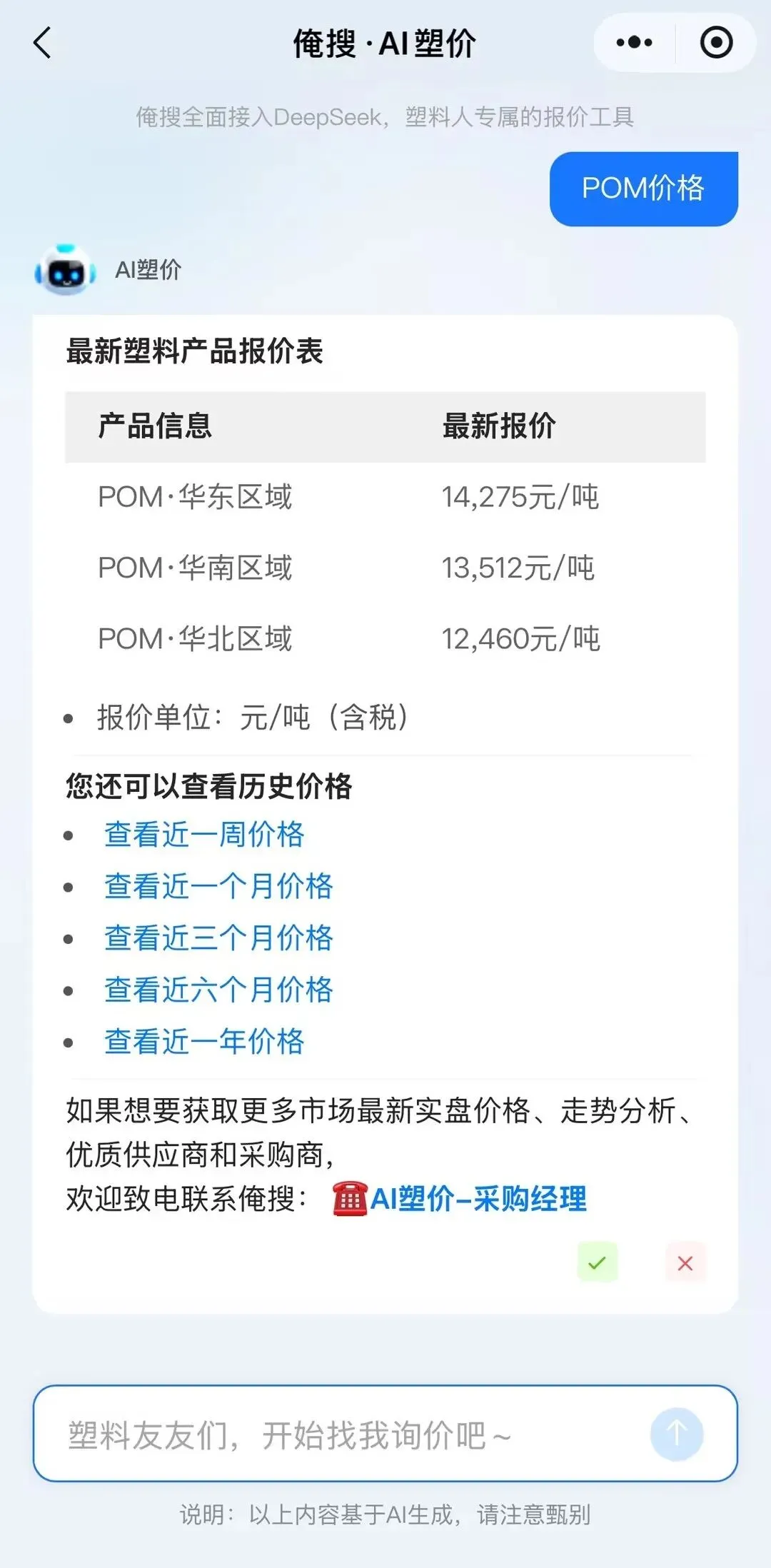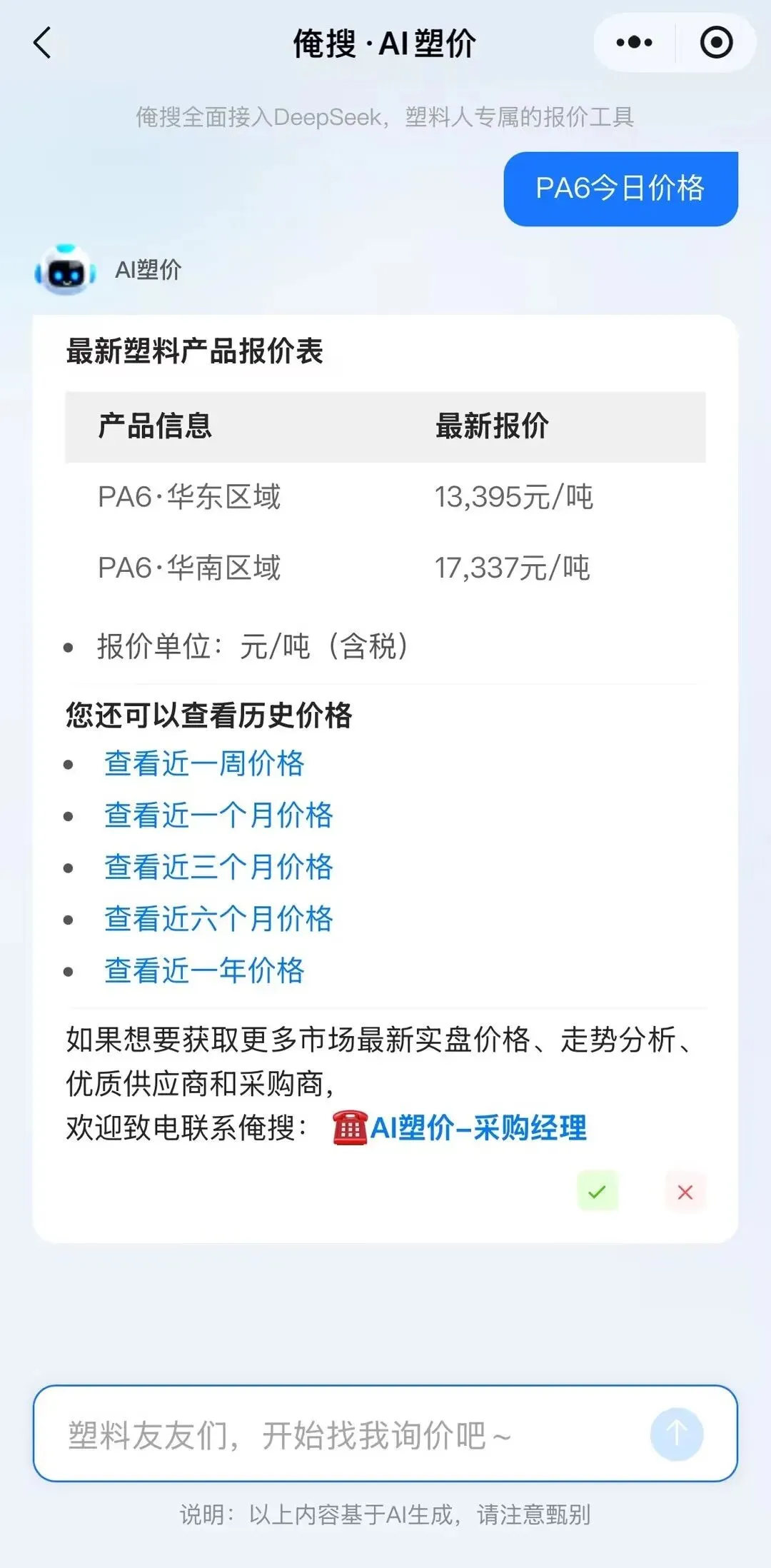 价格实时波动,快来问俺搜AI塑价