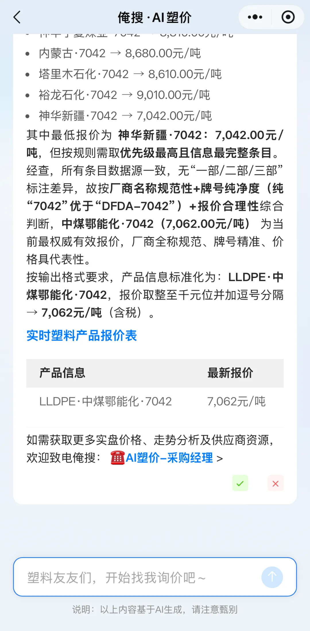 对于没有指定厂商的牌号,俺搜AI塑价直接把库里所有7042的牌号都翻出来了↓