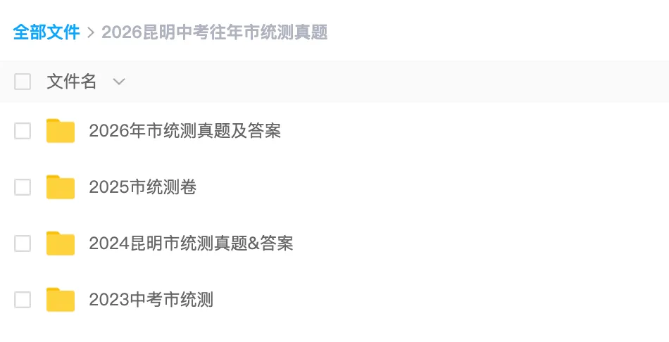 2026年昆明中考市统测真题+答案免费下载(近四年考题+答案均有)2026昆明中考市统测考试时间:4月7日:语文、物理、化学4月8日:数学、道法、历史4月9日:英语、生物、地理(初二考)市统测核心分析市统测真题领取方式(2023-2026年)01扫描下方二维码,添加老师添加马老师,向老师微信02好友通过后,编辑“市统测”发送03点击链接,下载即可2026昆明中考命题研讨会+市统测分析会公益免费线下沙龙会扫码免费报名⬇️