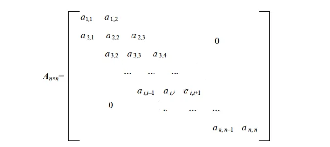 三对角矩阵中,前 i-1 行共有 3*(i-1)-1=3i-4 个元素(第一行 2 个元素,其余每行 3 个元素);第 i 行中,aᵢⱼ的位置: