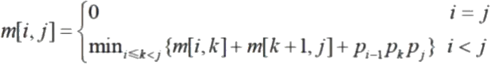 其中,Aᵢ的维度为 Pᵢ₋₁Pᵢ,m [i,j 表示 A₁Ai+1…Aⱼ最优计算顺序的相乘次数。