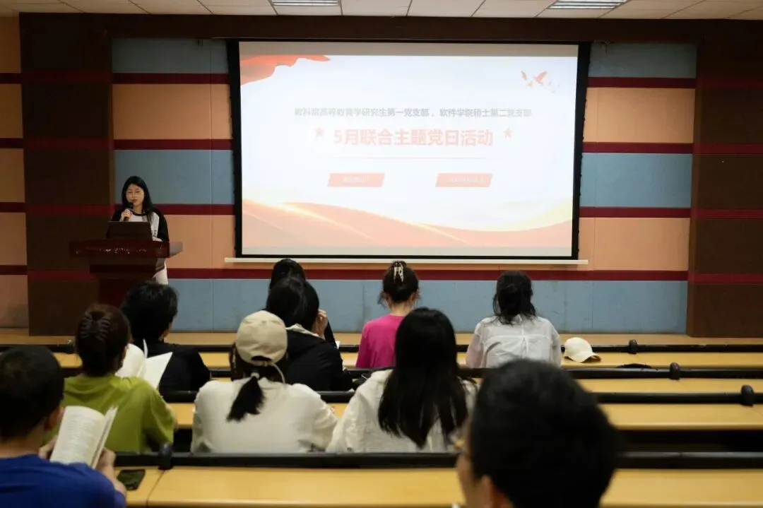 为积极响应党中央开展党纪学习教育号召,贯彻落实习近平总书记在二十届中央纪委三次全会的重要讲话精神,加强支部党员党性党风党纪素养,促进不同学院党支部之间的交流与合作,近日,软件学院研究生第二党支部与教科院高等教育学研究生第一党支部于在教科院联合举办了以“党纪专题共学习,支部联合促交流”为主题的党日活动。
