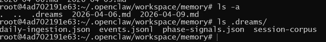 梦境会将数据存在workspace目录的memory下: