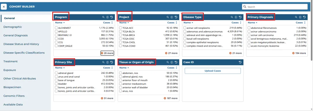 !!!本文所涉及的 TCGA 相关数据统计与获取方法,是基于文章发表前的平台版本与数据发布情况。随着数据库的持续更新与迭代,具体数据信息、平台功能及获取路径请以对应时间的官方最新版本为准。