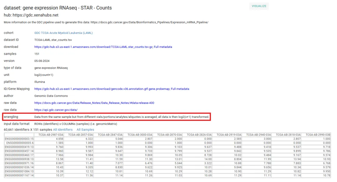 !!注:UCSC xena中的counts、fpkm、tpm数据是log2(counts+1)、log2(fpkm+1)、log2(tpm+1)的结果。