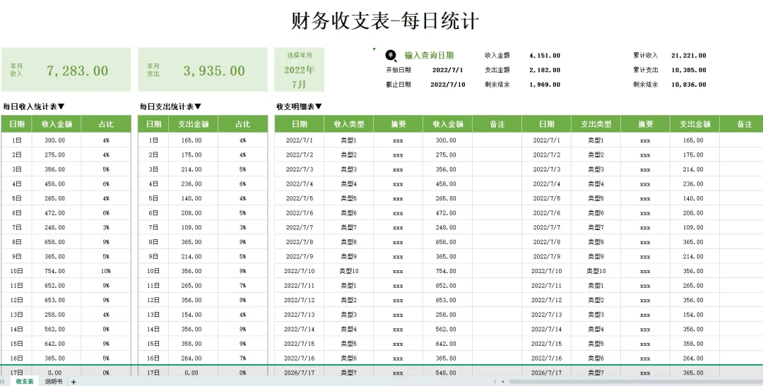 公司每日收支明细表