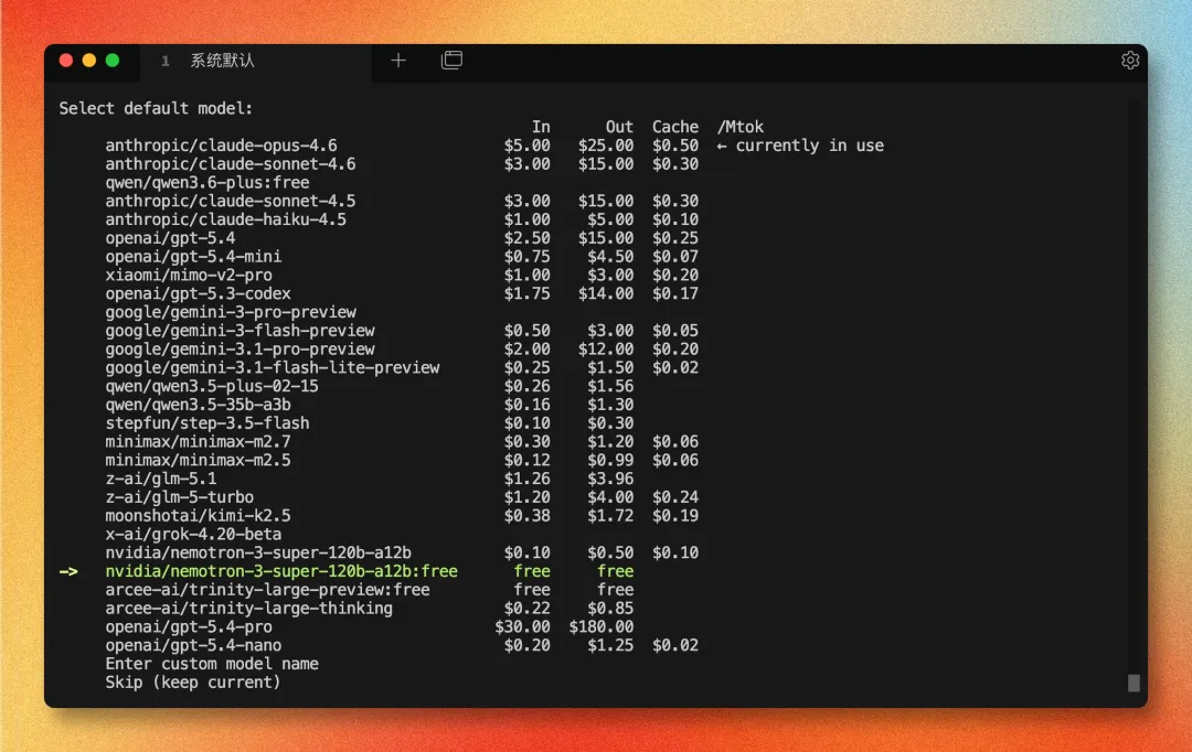 nvidia/nemotron-3-super-120b-a12b:free优点很简单:免费,够用,适合先完成验证。