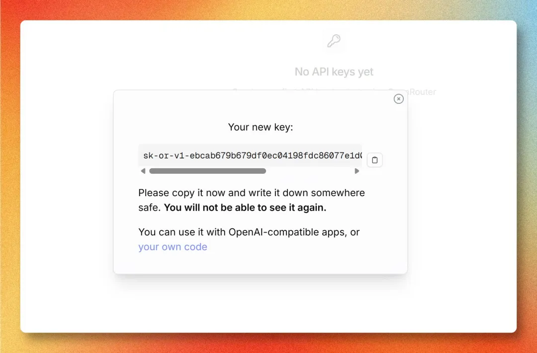 如果你还没有 OpenRouter Key,可以先去 openrouter.ai/keys 创建一个。