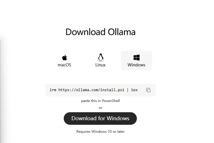打开https://ollama.com,首页就能看到下载按钮。根据你的系统点击下载,然后一路点"下一步"就行。