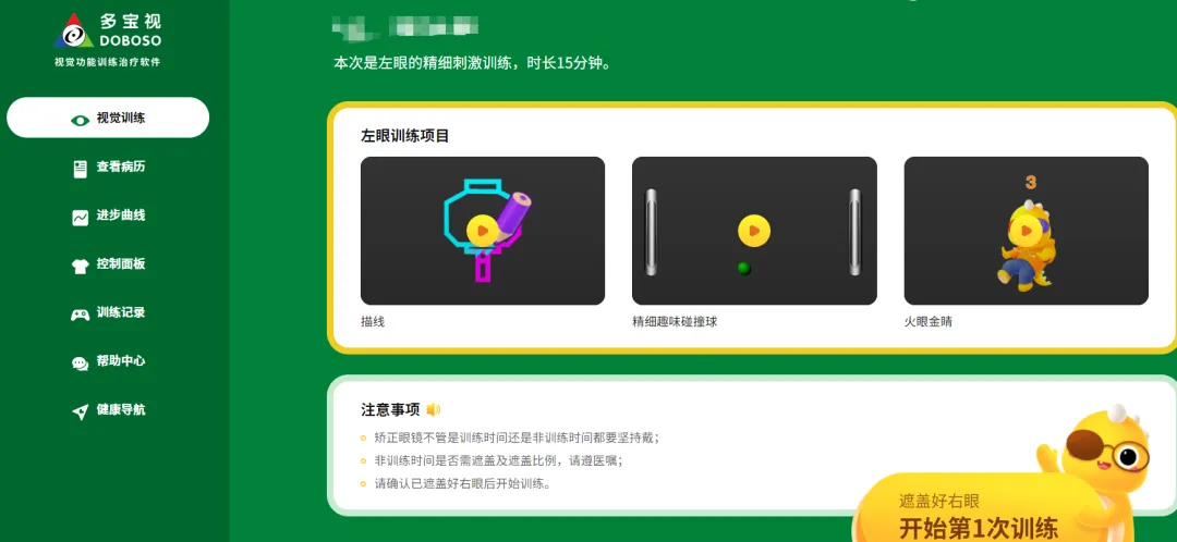 ①精细刺激训练模块:精细目力训练+旁中心/中心注视刺激