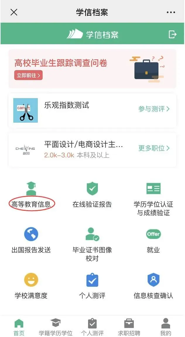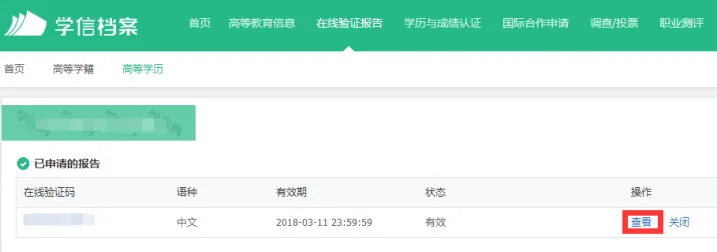 点击进入学历信息后,在页面下方点击申请验证报告: