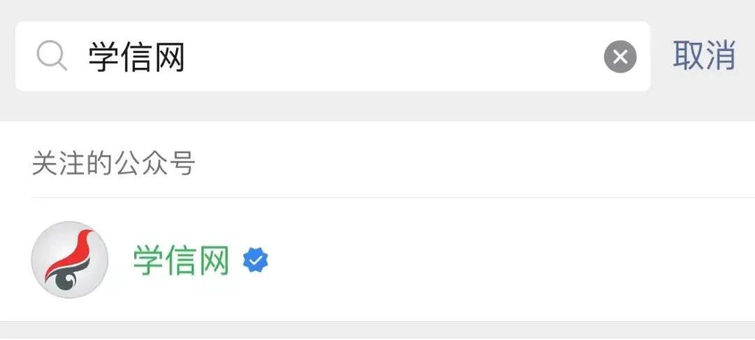 手机微信搜索“学信网”,找到学信网官方公众号并关注: