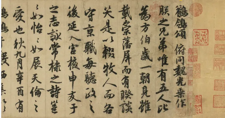 《鹊鸰颂卷》为唐代宫廷书法作品,通常被认为与唐玄宗李隆基相关,是研究唐代书法与宫廷文化的重要资料之一。