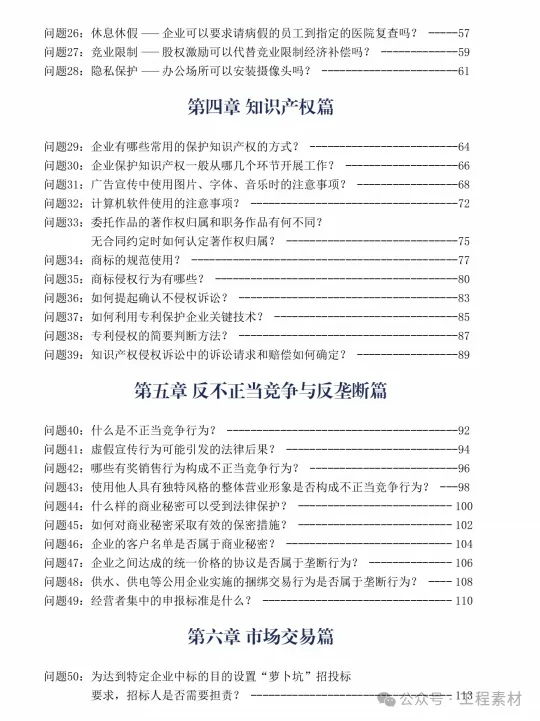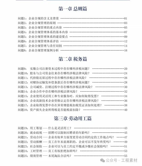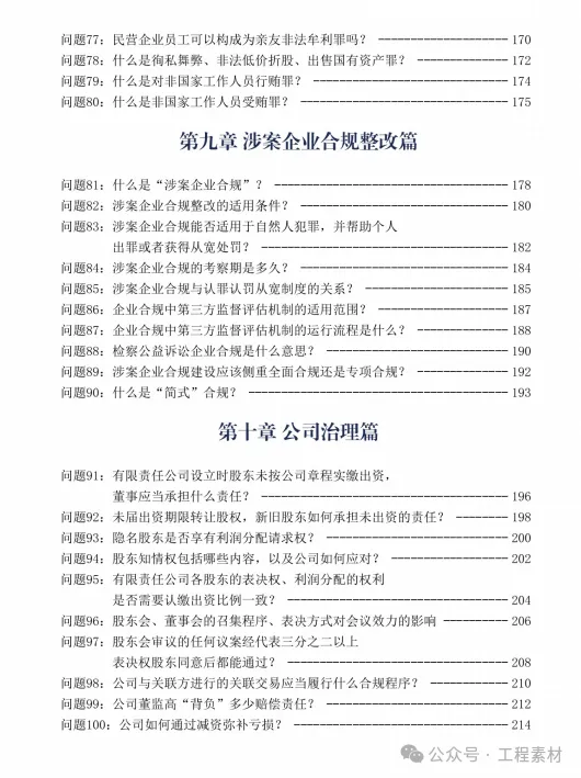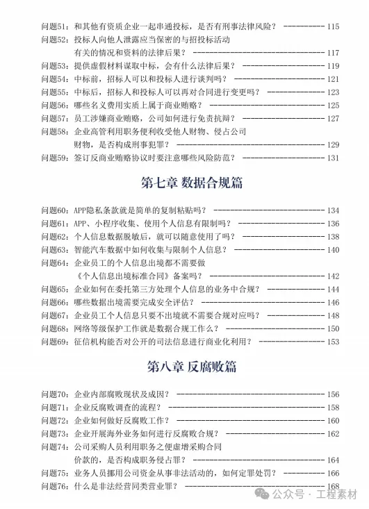 《企业合规百问百答》从企业合规的基本问题、税务筹划、劳动用工、知识产权、反不正当竞争、反垄断、市场交易、数据合规、反商业贿赂、涉案企业合规、公司治理等10个方面,通过100个常见的实务问题,探讨企业经营的常见风险,分析企业运营的合规之道。案例虽然是一个点,但是可以从点及面,企业通过案例可以了解合规的应有之意,进而根据自己企业的需求,完善相应的专项合规内容,建立健全合规管理体系,最终达到真正有效