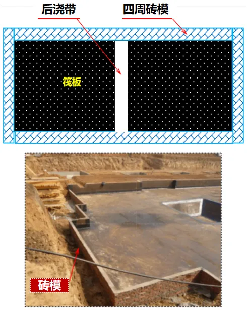 所以,“砖胎模已经起到了后浇带侧模的作用”,就是笑话般的存在。岂有用砖模作筏板后浇带模板的?
