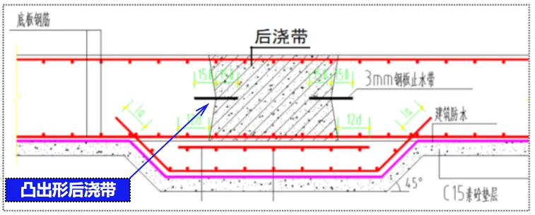更何况有的后浇带设计还是凸起形状的,砖模根本没法砌。(见下示意图)