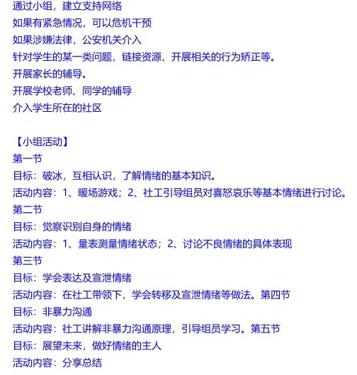忌脱离理论:每个干预点需点名理论依据,如“运用优势视角,发掘服务对象的编织技能……”