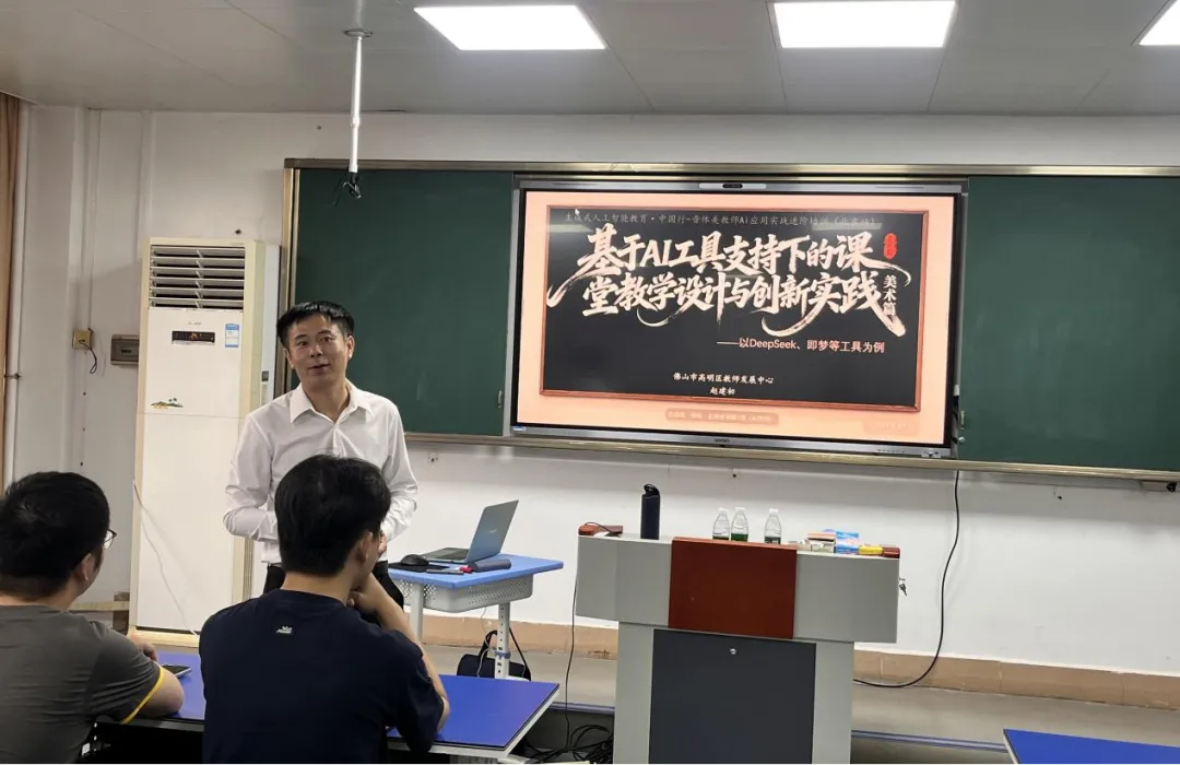 为深入推进学校“明课堂”教学改革,助力青年教师提升教育数字化实践能力,4月8日下午,我校在四楼录播室开展了“AI赋能‘明课堂’教学的应用与实践”青年教师专题培训活动。本次活动特邀高明区教师发展中心信息资源部主任赵建初老师担任主讲,全体青年教师积极参与学习。