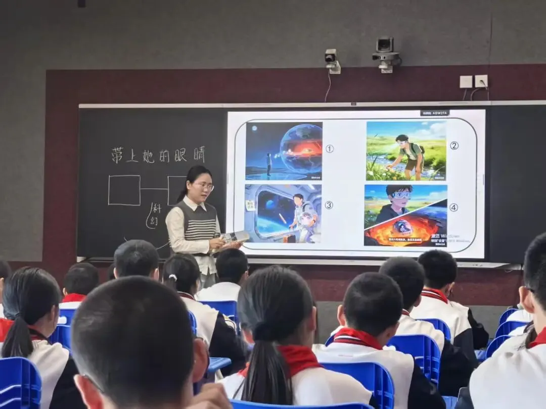 十一师五中牛雨朦老师讲授科幻作品《带上他的眼睛》,用技术营造科幻情境,激发想象。