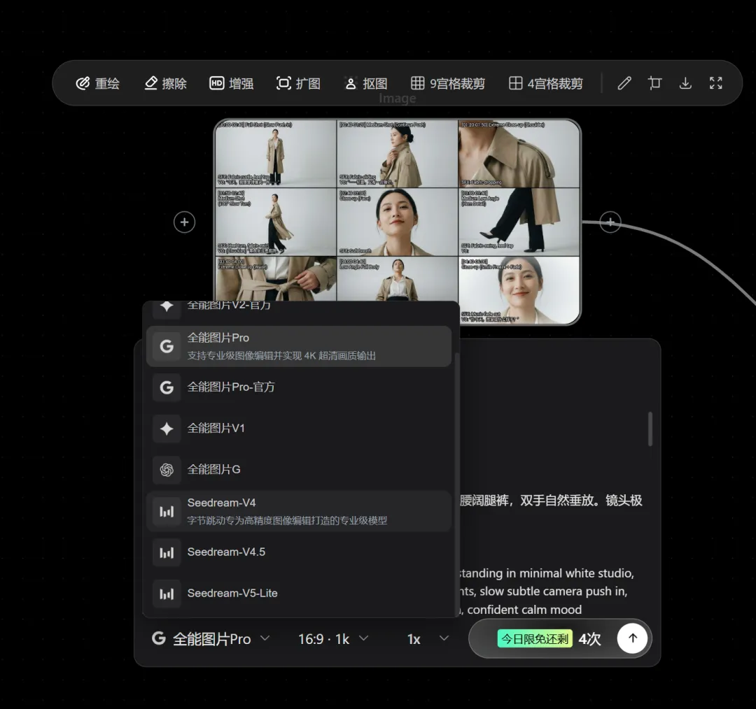 首先用户输入想法:可以是一小段文本,可以是一个剧本文档: 如我输入: 火星撞击地球,灾难悬疑,15秒,写实风格, 先规划总剧本大纲和角色与场景的设计。生成后可以自己修改,也可以重新生成,我加入了版本控制,可方便进行切换使用。 切换到角色与场景中,就会得到刚才在剧本大纲生成的结果,角色与场景的资产设计。 这里就是生成角色图,支持API调用第三方的实现文生图,当然,我重点是支持本地使用comfyUI来实现生图,在我看来,应用要与comfyUI相互配合要实现内容生产,comfyUI在这里充当一个”点“,即其中一个环节(流程),用完即走,整体是围绕AI短剧的内容生产服务。 当然这里选用的是FLUX klein的工作流来对接实现: 因为flux klein本生就是为这类的应用场景设计的高效模型。本地设备越好,生成速度就越快,基本是秒级生产。当然它的缺点是不会”写“中文。当然如果说你想要使用qwen体系的模型,我提供了定制工作流的对接,如下图示: 回到角色与场景的模块,支持一键生产资产图的功能,因为在Agent中,已经直接产出角色描述、文生图提示词,设置支持有参考图的图生图如果你有要用的角色,直接上传后,Agent会判断出是参考生图。 前面的Agent解决了总剧本,角色与场景的设计,分镜脚本就是要解决详细内容的问题。这里点击 启动全集扩写,这样就能基于第一第二步的内容进行分镜的扩写。 它会全自动将每个分镜的内容匹配上角色与场景,形成详细生图提示词与视频生成提示词的描述呈现出来。 我们可以在分镜精细化生产工厂去编辑内容,生产分镜图与分镜视频。 然后在至少出完分镜图的情况下,提供分镜拼接。这里的目的是将分镜组合,因为本地设备不好的话,还能通过产出分镜图与脚本,在Seendance2.0这样的闭源产品中生成。以下是分镜拼接功能: 两种模式,图文分离就是最好的输出。如我输出了九宫格分镜图,然后在豆包使用seedance2.0进行视频生成: 这里要注意,Seedance2.0是不能生成写实类的。所以先转线稿再输入脚本分镜,如下图示: 当然,上面是在本地设备生成视频速度慢的情况下,可以跳出使用其它平台的模型来实现内容生产,但如果设备在8G以上显存,我们可以使用我们这个Agent对接的comfyUI LTX2.3 GGUF工作流来实现视频生成。 在这个模块生产完分镜图片与视频后,进入导出成片的模块。 这个版本的Agent会将生产好的图片与视频整理出来,按分镜顺序排列,我们可以随时查看: 一键打包图片与视频,然后通过其它剪辑工具后期处理。 第二个是提供剪辑工坊:直接进入剪辑工坊进行处理然后输出: 在模型方面的选择,文本生成模型选择Gemma4!图像生成模型选择flux2 klein,视频生成选择LTX2.3音画同步生成。 这是一次非常成功的尝试与实现。所以我也很期待Happy horse的明天的发布。这样在视频生成模型这一块的选择又多了一个。 基于以上的思考与实现, 开发了 AI短剧/短片/漫剧/动画的Agent工作台,本地化高效运作的整体解决方案: https://aigc.douyoubuy.cn/ai-agent/ 以上就是分享的全部内容,有需要的可以上我的网站上了解。由于这个项目是跟麻薯像素合作,需要到其网站上开通订阅。 CloserAI 会员小伙可联系我获取一年订阅使用。 上面在九宫格分镜图视频制作中,还有另外一种方法,在runningHug上的无限画布,也能生成分镜与视频 在图像与视频生成中,一个节点就能直接调用使用并生成。十分方便,且价格优惠。它通过集成闭源模型简化了工作流程直接输入即所得,速度很快。是一个不错的选择。通过 注册地址:https://www.runninghub.cn/?utm_source=kol01-RH151 注册后打开无限画面