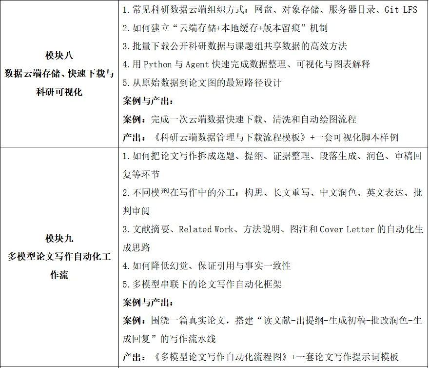 🌟 课程二:最新AI驱动科研全链路实战营:贯通LLM应用→数据分析→自动化编程→文献及知识管理→科研写作与绘图→构建本地LLM、Agent→多模型圆桌会议→N8N自动化工作流→OpenClaw个人AI助手→seedance2科研科普视频生成深度应用培训班