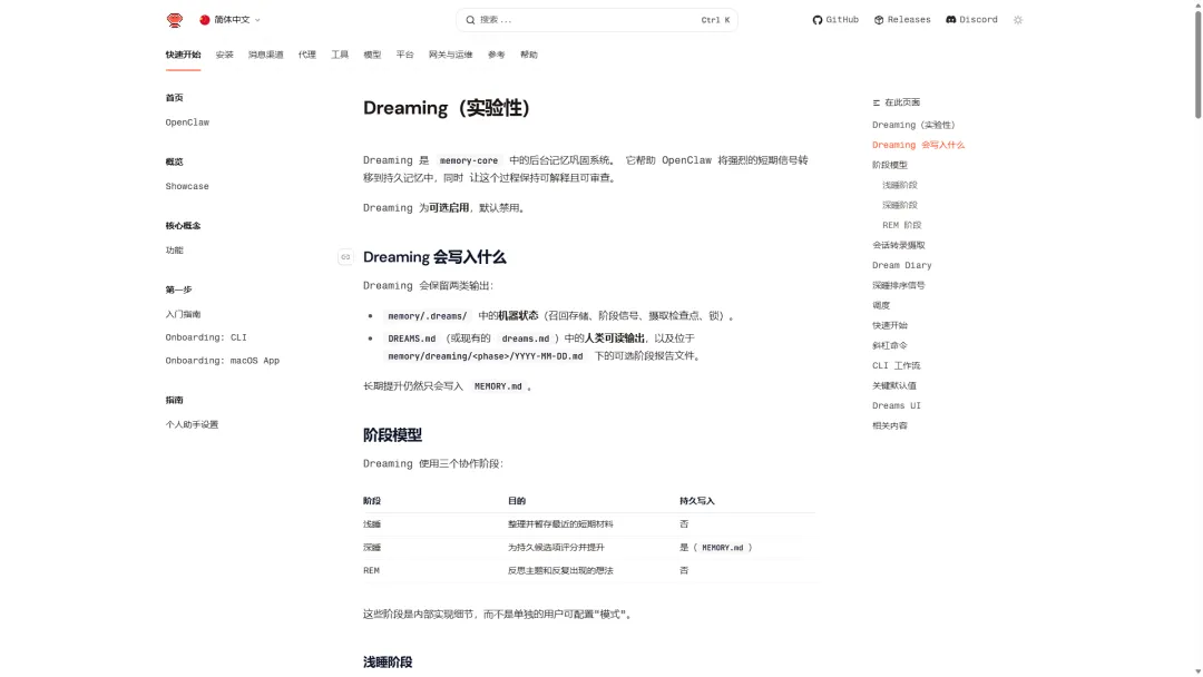 Dreaming 目前标记为实验性(experimental)功能,但核心机制已经稳定。如果你在使用中对AI的记忆质量有更高要求,开启做梦后长期记忆的质量会明显提升。建议先从默认配置开始,观察梦境日记一段时间,再根据自己的需求调整阈值和频率。