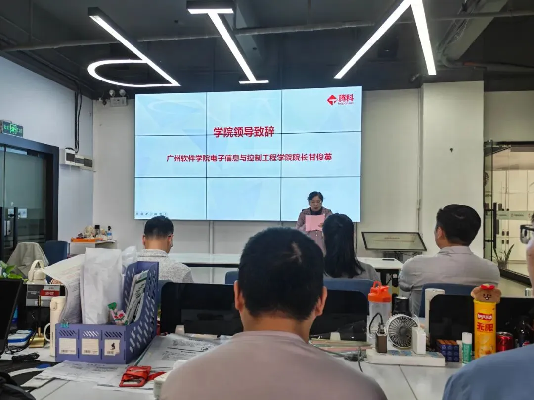 为助力学子紧跟国产操作系统发展浪潮,掌握鸿蒙应用开发核心技术,广州软件学院电子信息与控制工程学院联合广州腾科网络技术有限公司,于3月14日—15日、21日—22日及28日,成功举办为期五天的鸿蒙应用开发项目实训营(周末班)。3月14日,实训营开班仪式顺利举行,广州软件学院电子信息与控制工程学院院长甘俊英院长、党委书记李应东书记、副院长陈华珍院长,广州腾科网络技术有限公司副总经理方少群、渠道项目经理袁泽帆、项目负责人朱加庄,班主任李东俊以及学院近百名各相关专业优秀学子齐聚一堂,共同开启鸿蒙技术的探索之旅。