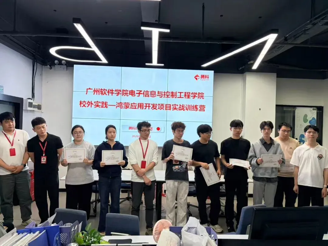 此次鸿蒙应用开发实训营,是广州腾科网络技术有限公司与广州软件学院电子信息与控制工程学院深化产教融合、精准对接战略性新兴产业人才需求的重要实践。在双方共同的支持下,始终坚持将行业前沿技术引入课堂,引导学生在学用结合、知行合一中提升专业能力,切实增强就业竞争力与长远发展潜力,积极为学院学生搭建近距离学习行业顶尖开发技术的优质平台,为大家拥抱万物互联的智能时代、走好未来职业发展之路奠定了坚实基础。