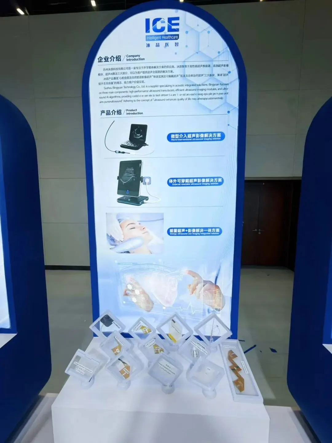 在展区另一侧,苏州冰原科技(冰晶医智)凭借“超声+ AI”全链路解决方案成为关注焦点。企业聚焦高性能超声换能器、超声影像模块、超声AI算法三大核心板块,打造从硬件到软件的完整技术体系,有效解决传统超声高度依赖医生经验、诊断一致性不足等痛点。