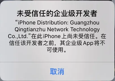 A.下载安装完成之后,出现提示“未受信任的企业级开发者”的处理方法