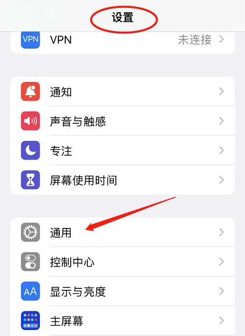 第一步:记住上图弹窗中的提示字母,关闭弹窗;然后打开苹果手机上的 →设置→通用;