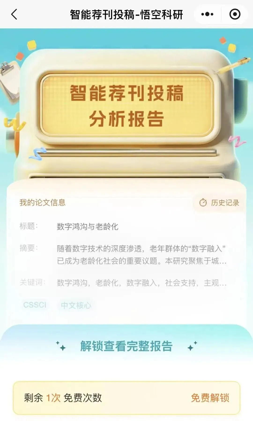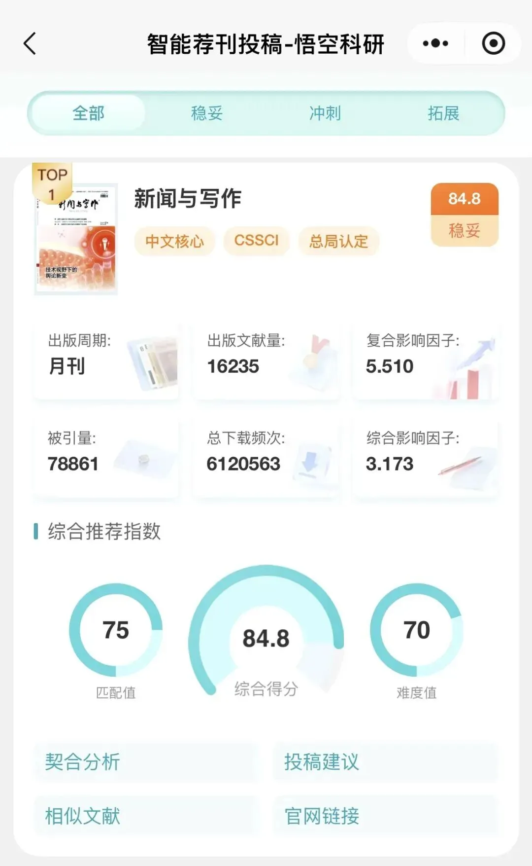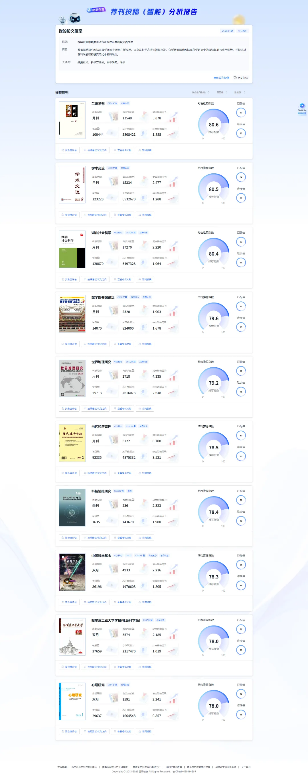 5、查看生成的“智能荐刊投稿分析报告”;