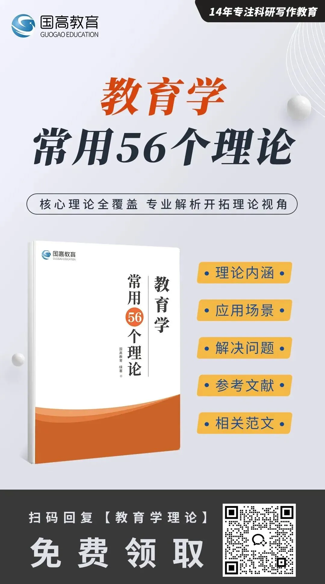 在教育学领域,扎实的理论基础是科研工作的核心支柱。掌握教育学科理论能为我们的学术研究提供坚实的理论框架和创新动力。理论学习让我们在探索真理的道路上有据可依、有章可循。为了方便大家更加高效系统的学习教育学学科理论,我们从人文社科常用理论中精心挑选,推出这本《教育学常用56个理论》手册,现在免费送给大家!