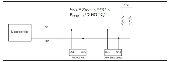 ④ 由于I2C总线在一个时间段内只有1个主机和1个从机,所以当1个单片机正在写通信数据时,另一个单片机是不能对FRAM进行操作的。如果需要实时、频繁地读取FRAM中参数的话,请预先将参数读入RAM单元使用或另外增加专门存放参数的芯片。