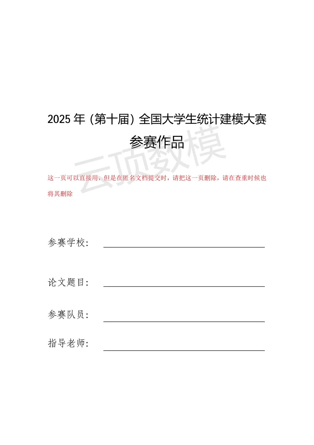 为了方便大家更好的拿奖,小云已经根据统计建模的要求整理了一份【论文模板】。