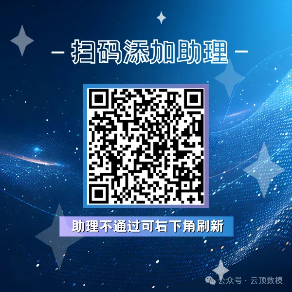 小云为大家准备了完整的备赛资料,需要的小伙伴可以关注公众号【云顶数模】回复【助理】获取完整资料!!