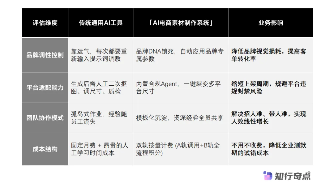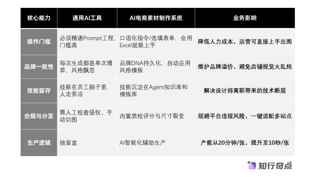 核心能力对比:通用AI工具 vs「AI电商素材制作系统」