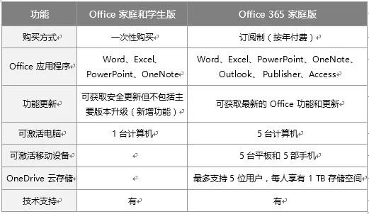 与 Office 2016 的区别看表格就知道了↓↓↓