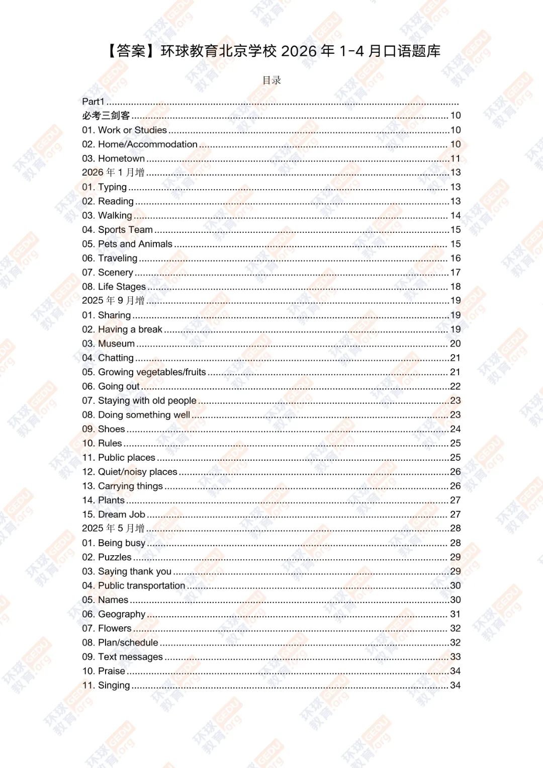 环球教育的教研老师们已系统整理了2026年1-4月雅思口语题库,每道题后面都附有示例答案,方便同学们进行练习,帮大家从容应对,高效备考!