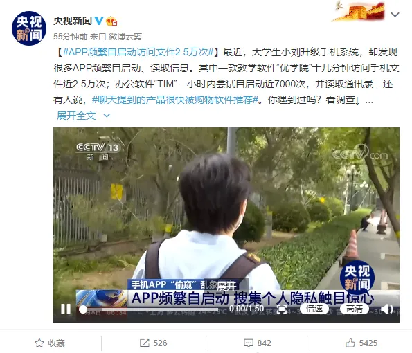 此前MIUI 12登上了央视新闻,检测到了一些流氓APP在后台的操作:优学院访问手机文件近2.5万次,TIM则一小时内自启动近7000次。