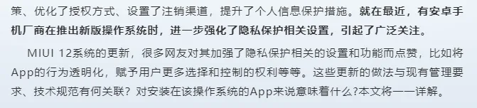 此前工信部也曾表扬MIUI 12加强了隐私保护,将app的行为透明化。