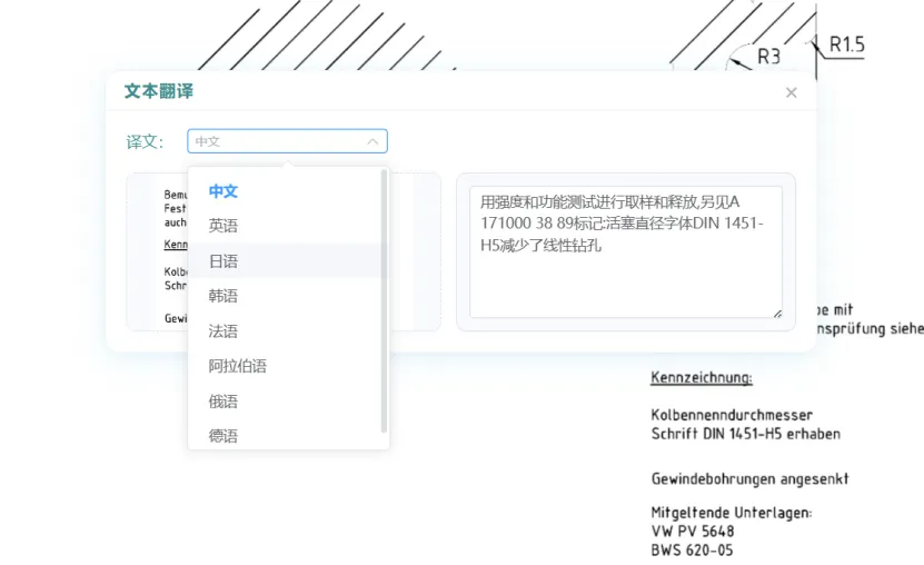 广州丰达的案例提供了另一个视角。该企业图纸同时包含日文和中文标注。简会通过定制开发,使系统能够识别多种外语标注的相关信息,并将参数同步标注于气泡图中。系统不仅“看”到了标注,还能“理解”其语言含义和工程语义,完成跨语言的参数提取。