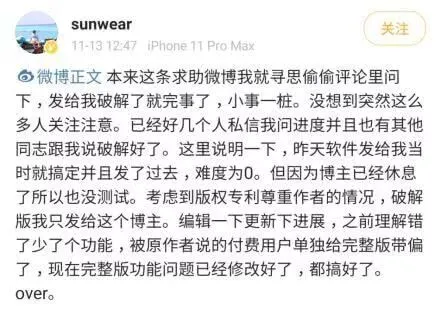 12日晚上安全领域大神@sunwear只用了一句话“软件发给我,我让团队的人看看能否破解。” 带起了整个技术圈的节奏。