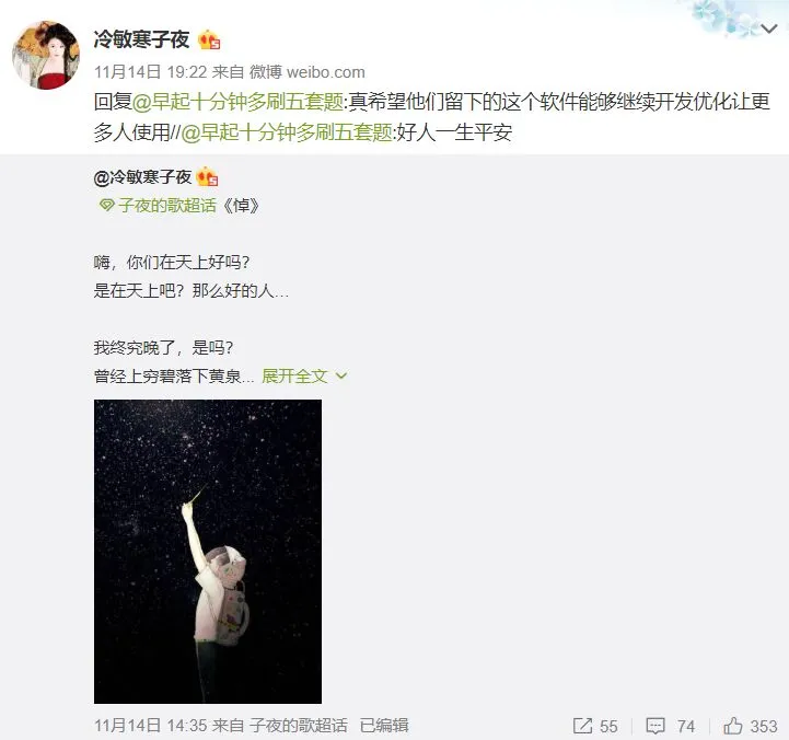 方瑜用破解版的软件写了一首《悼》悼念逝去的开发者。