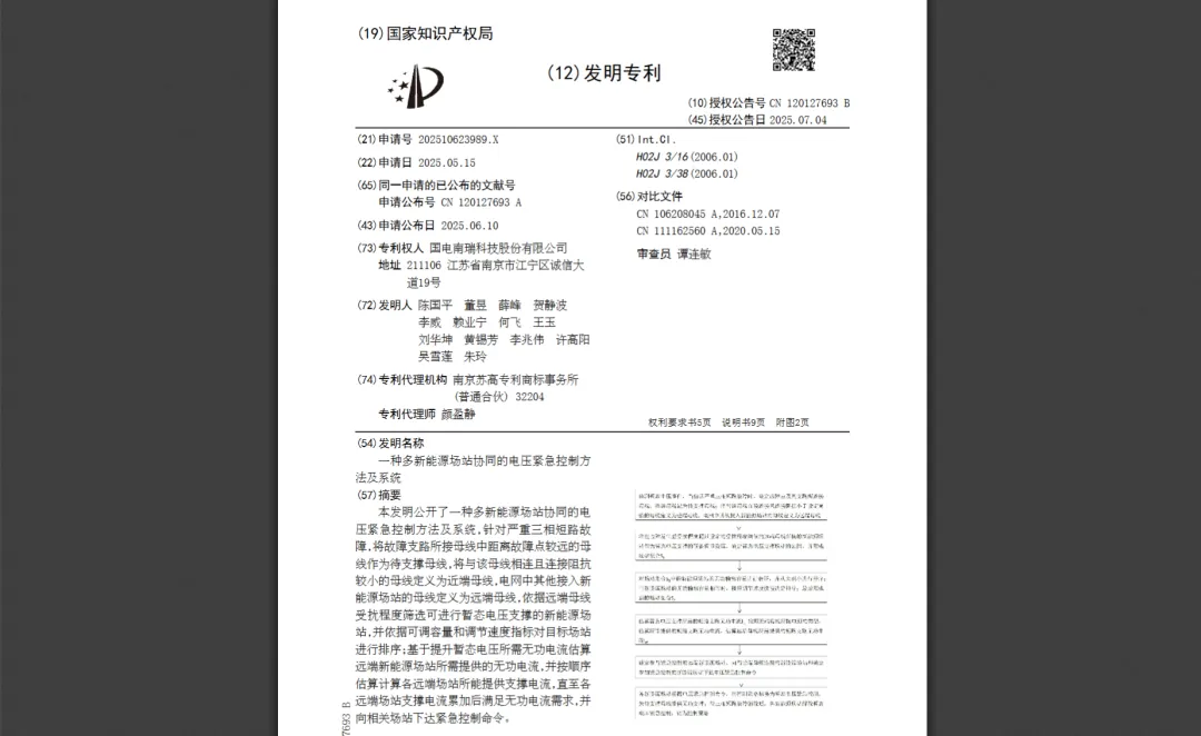 CN120127693B 一种多新能源场站协同的电压紧急控制方法及系统有权