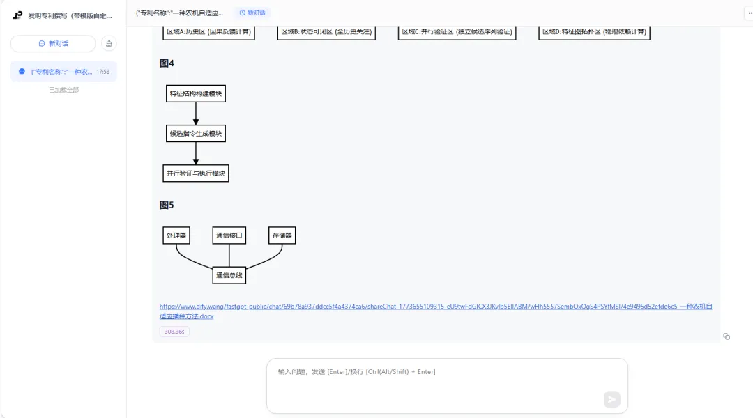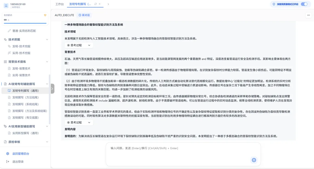 通用AI无法区分这些领域差异,但你的模板可以。上传一份化工领域的授权专利,系统就能学会如何描述温度区间、压力范围、催化剂配比。上传一份通信领域的,系统就能学会信令流程、协议栈、网元交互。