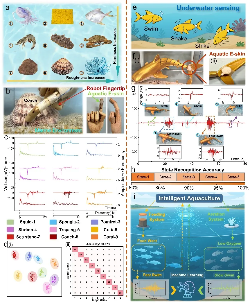 AI增强型水下电子皮肤在不同场景下的触觉感知应用