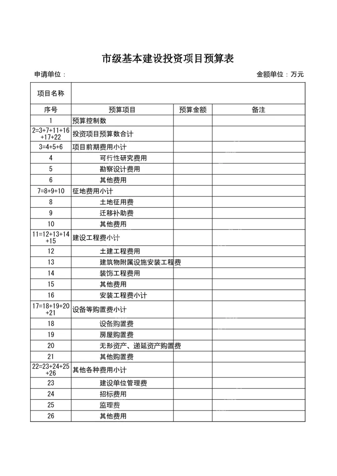 9市级基建项目预算表模板