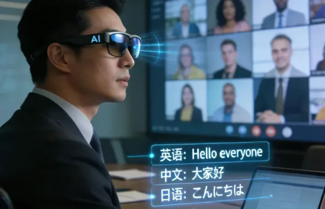 其中最值得关注的是其跨语言沟通能力。据悉,这款AI眼镜支持高达42种语言的同声传译,并非简单的语音转文字,而是深度融合了端侧AI算力与云端大模型。它采用骨传导加开放式扬声器设计,既能实现声音隔离、避免隐私泄露,又能将翻译结果以AR字幕形式投影至眼前,实现"边听边看"的沉浸式交互。