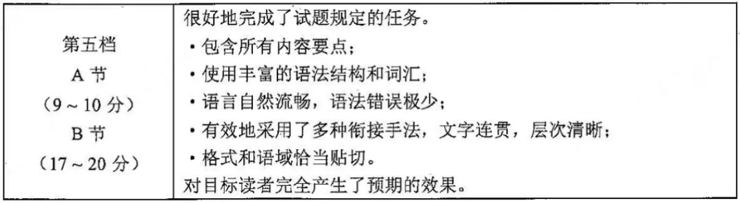 根据教育部发布的《考研英语评分标准》,高分档A节(9-10分)、B节(17-20分)的核心要求包括: